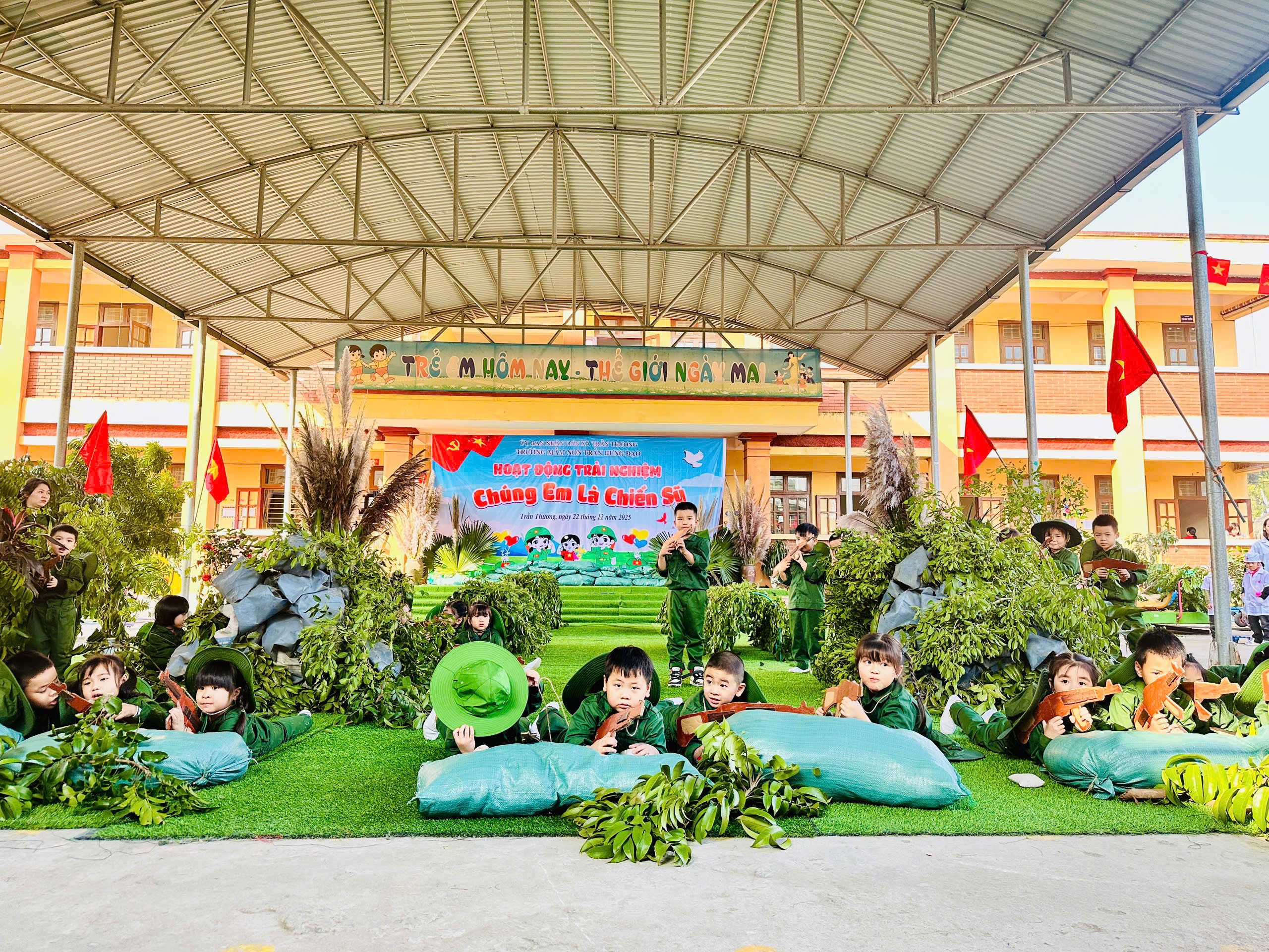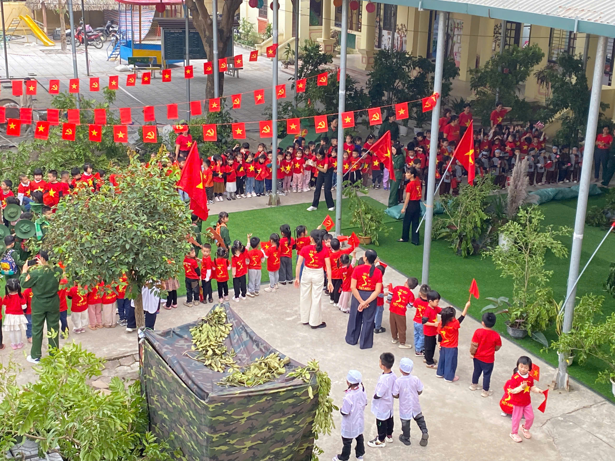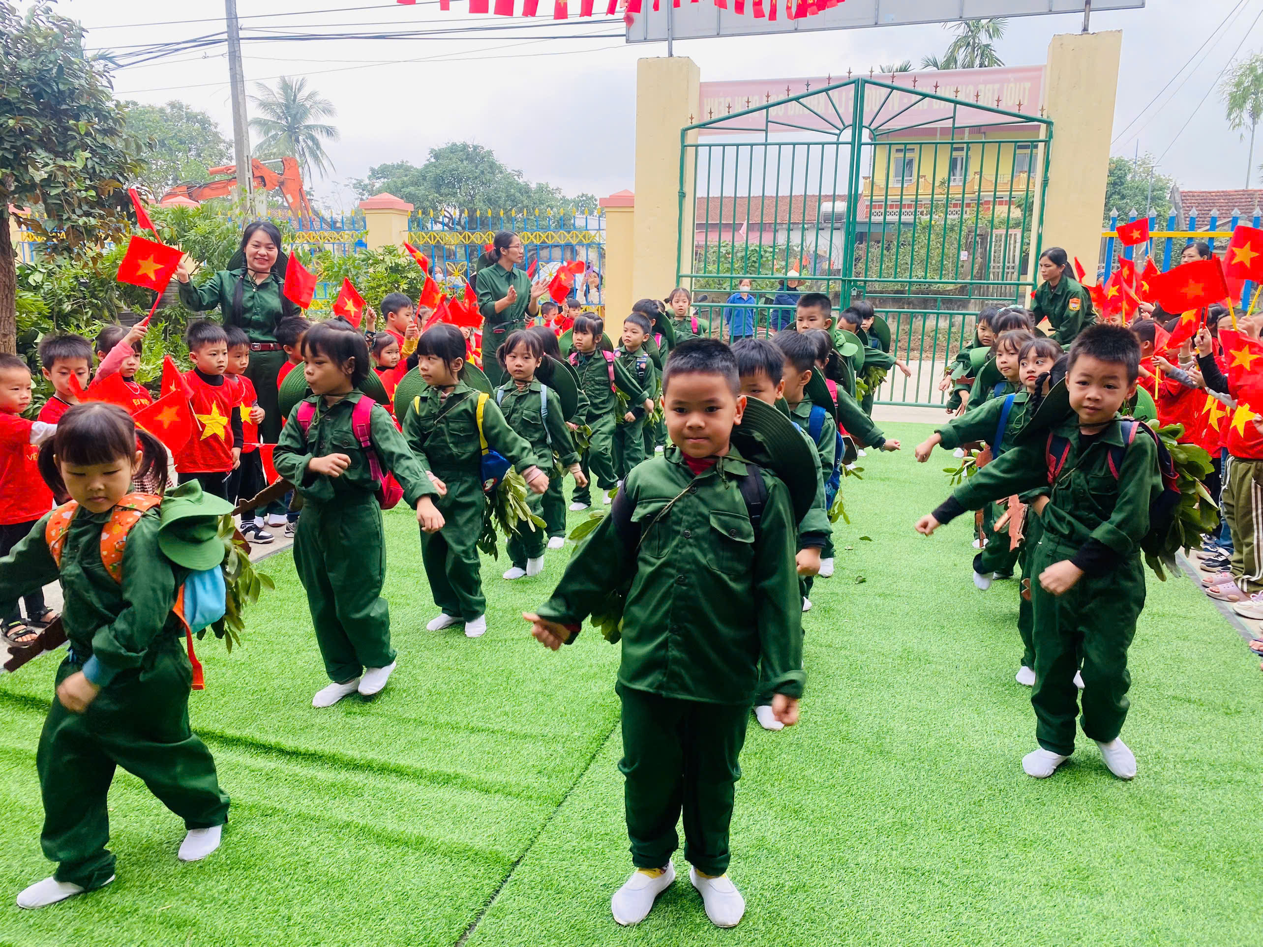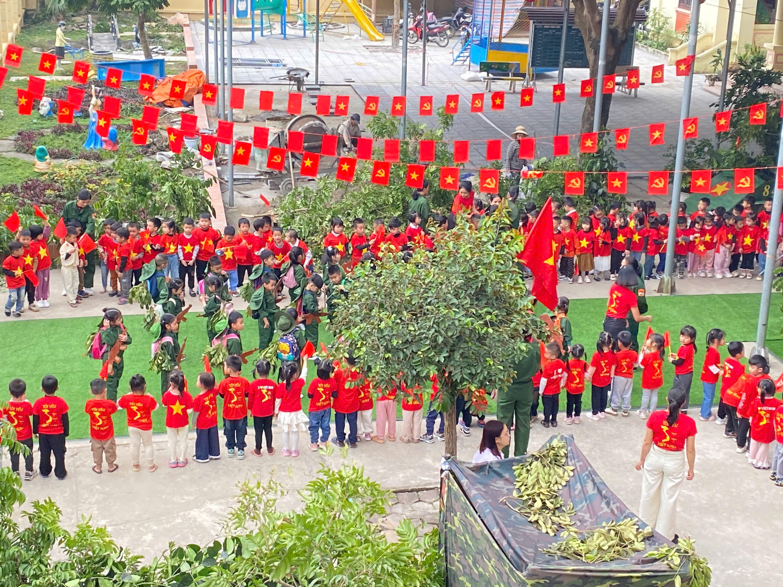 Hoạt động nhằm nuôi dưỡng tình yêu quê hương, đất nước, giúp trẻ hiểu hơn về công việc cao quý của các chú bộ đội – những người luôn ngày đêm gìn giữ vùng trời bình yên của Tổ quốc. Nhà trường tổ chức nhiều hoạt động trải nghiệm sinh động với chủ đề “Cháu yêu chú bộ đội”, mang lại cho trẻ những cảm xúc hồn nhiên, trong sáng và đầy tự hào.