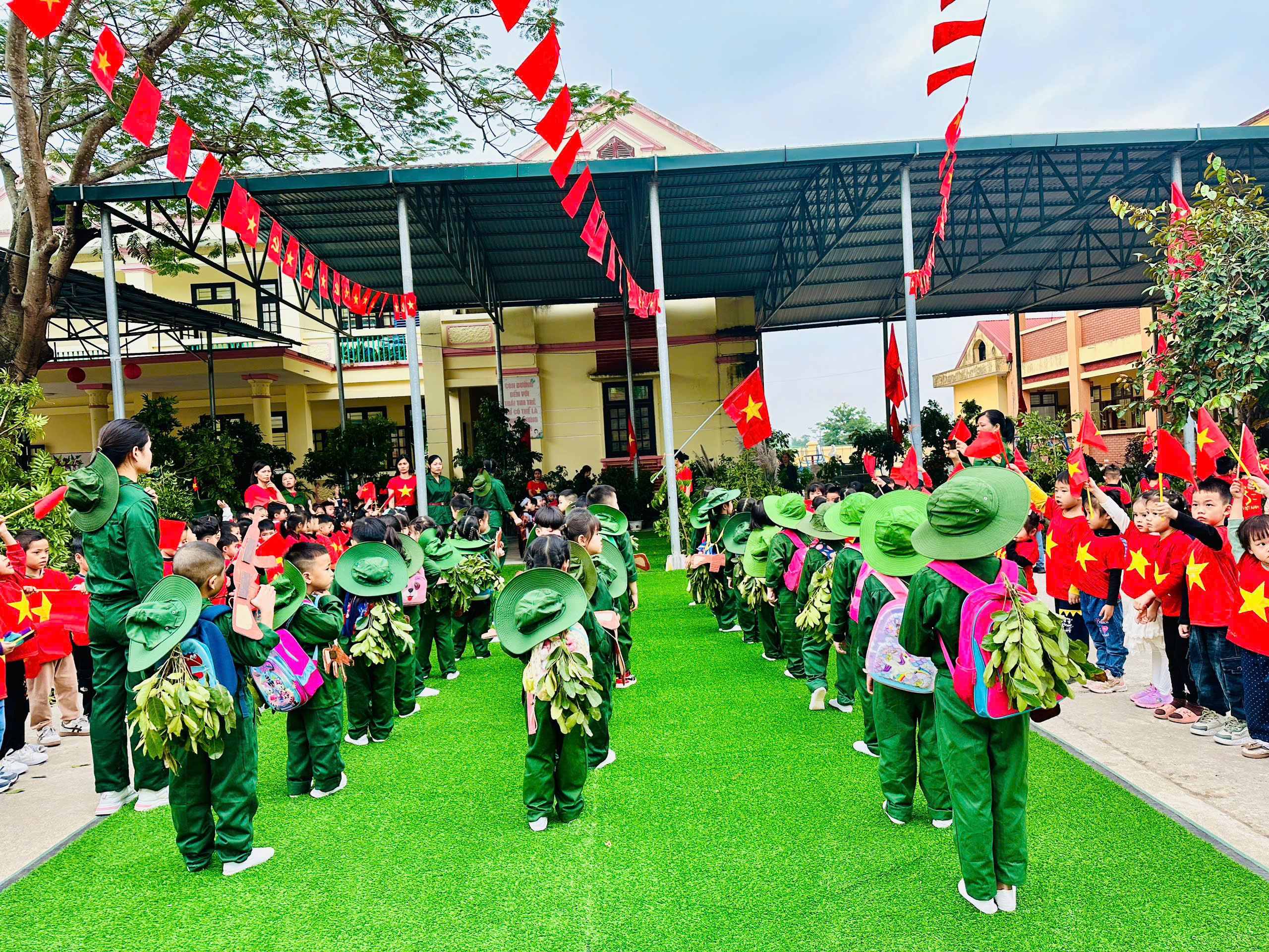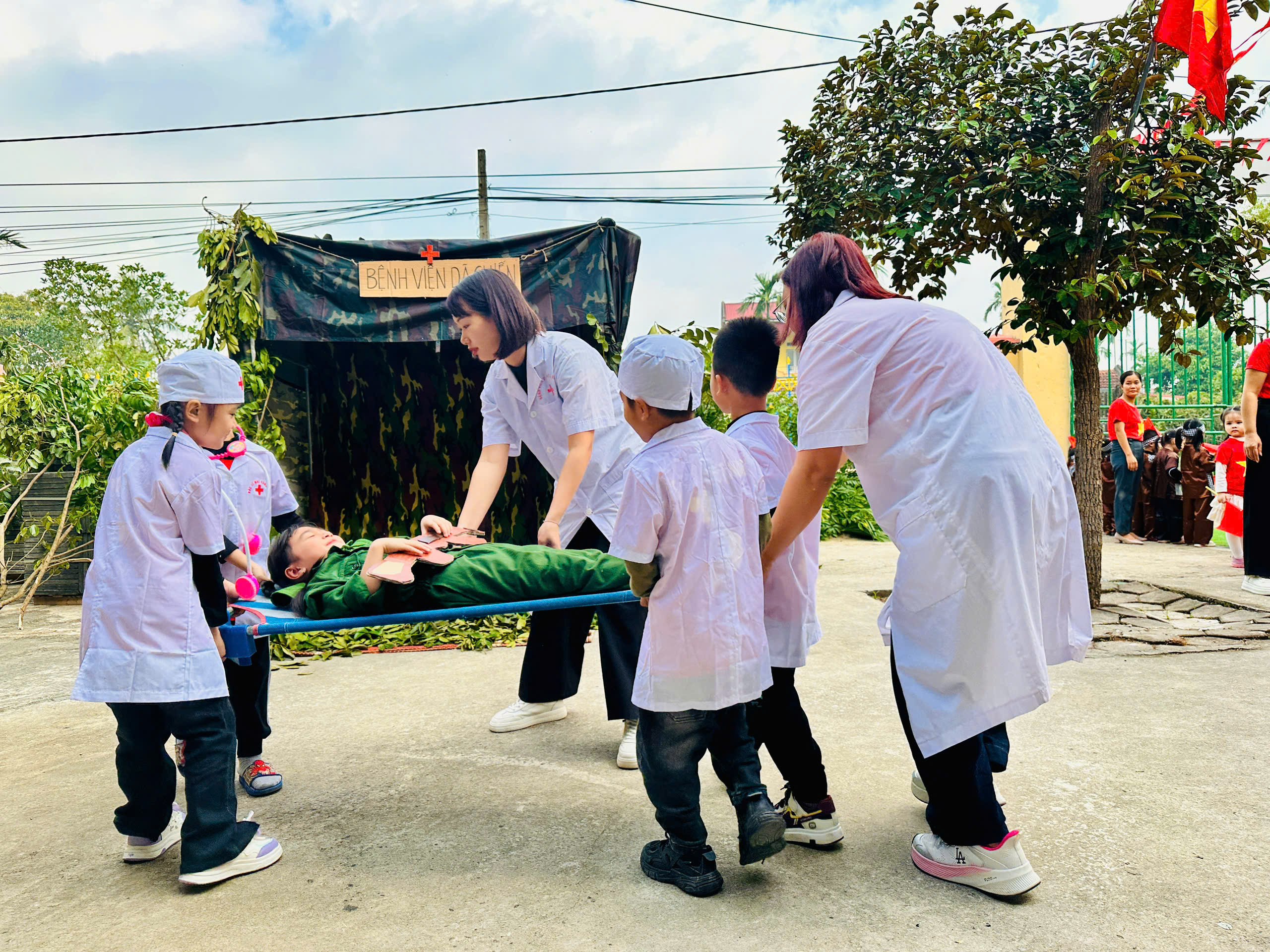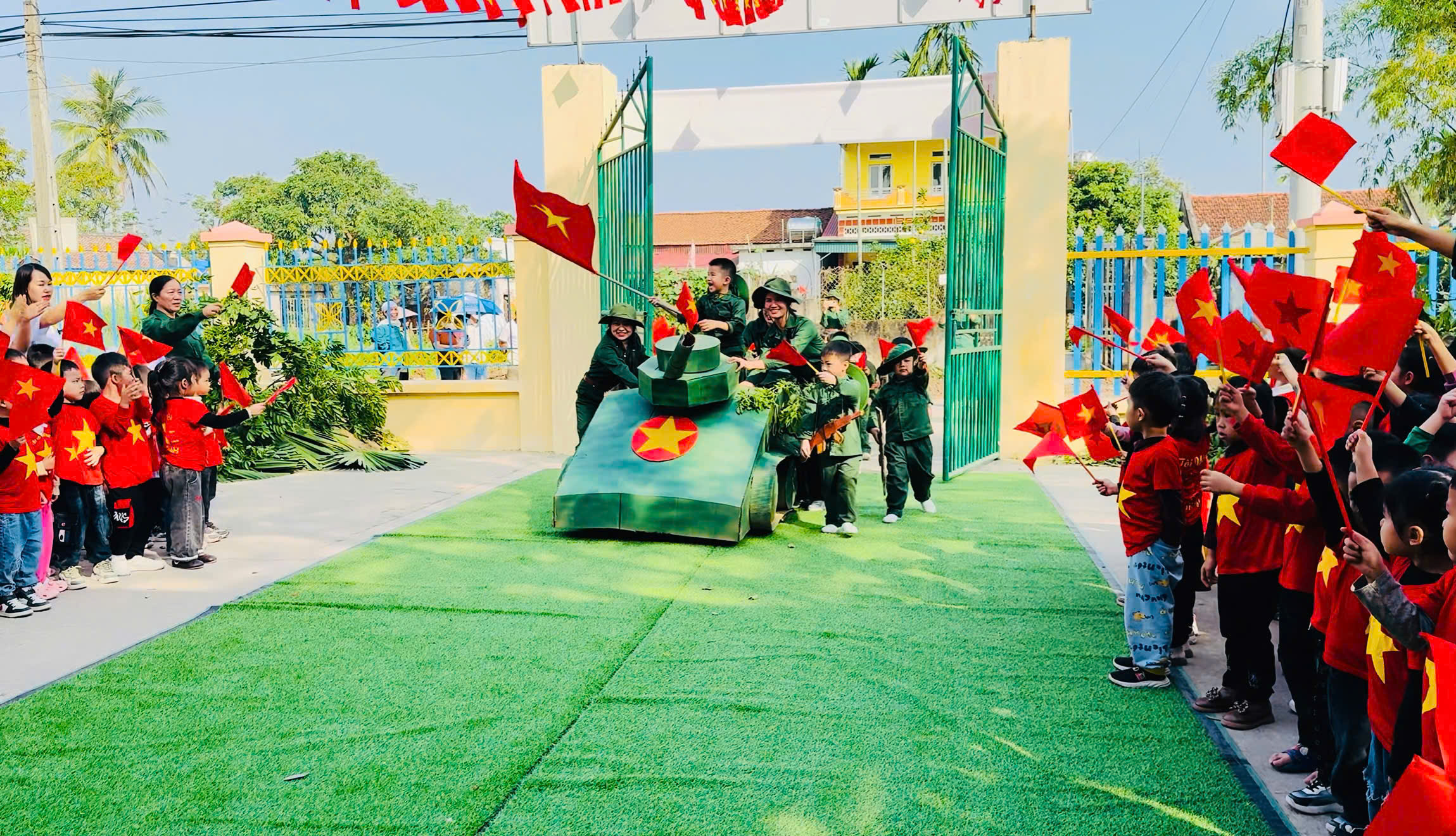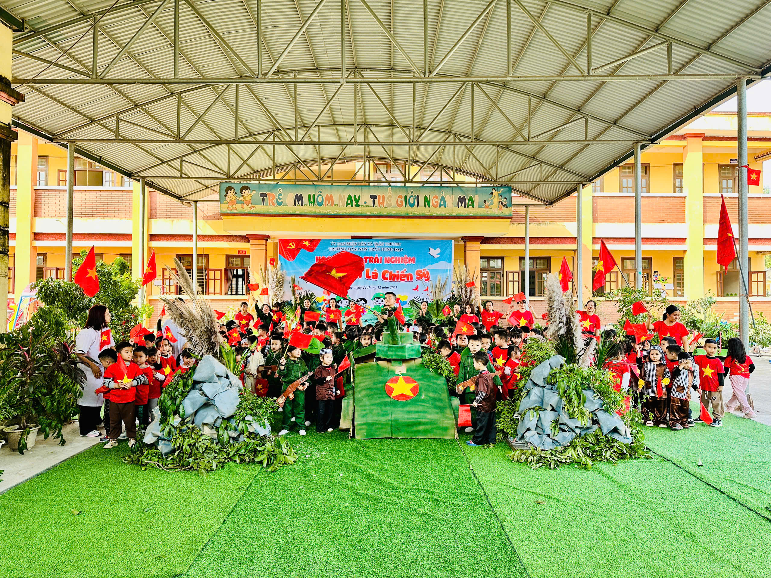 Hoạt động nhằm nuôi dưỡng tình yêu quê hương, đất nước, giúp trẻ hiểu hơn về công việc cao quý của các chú bộ đội – những người luôn ngày đêm gìn giữ vùng trời bình yên của Tổ quốc. Nhà trường tổ chức nhiều hoạt động trải nghiệm sinh động với chủ đề “Cháu yêu chú bộ đội”, mang lại cho trẻ những cảm xúc hồn nhiên, trong sáng và đầy tự hào.