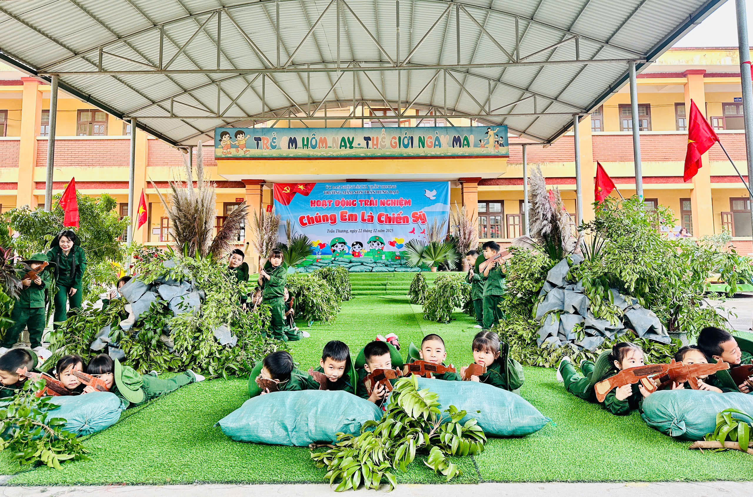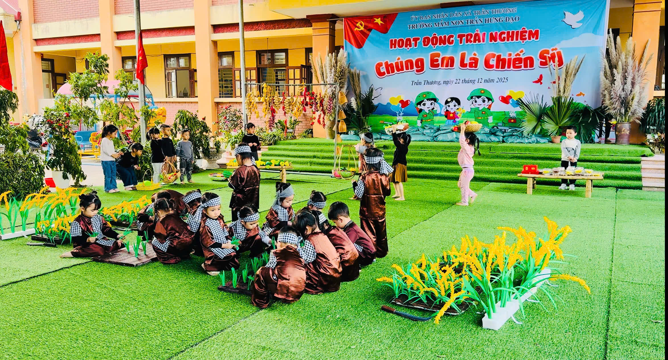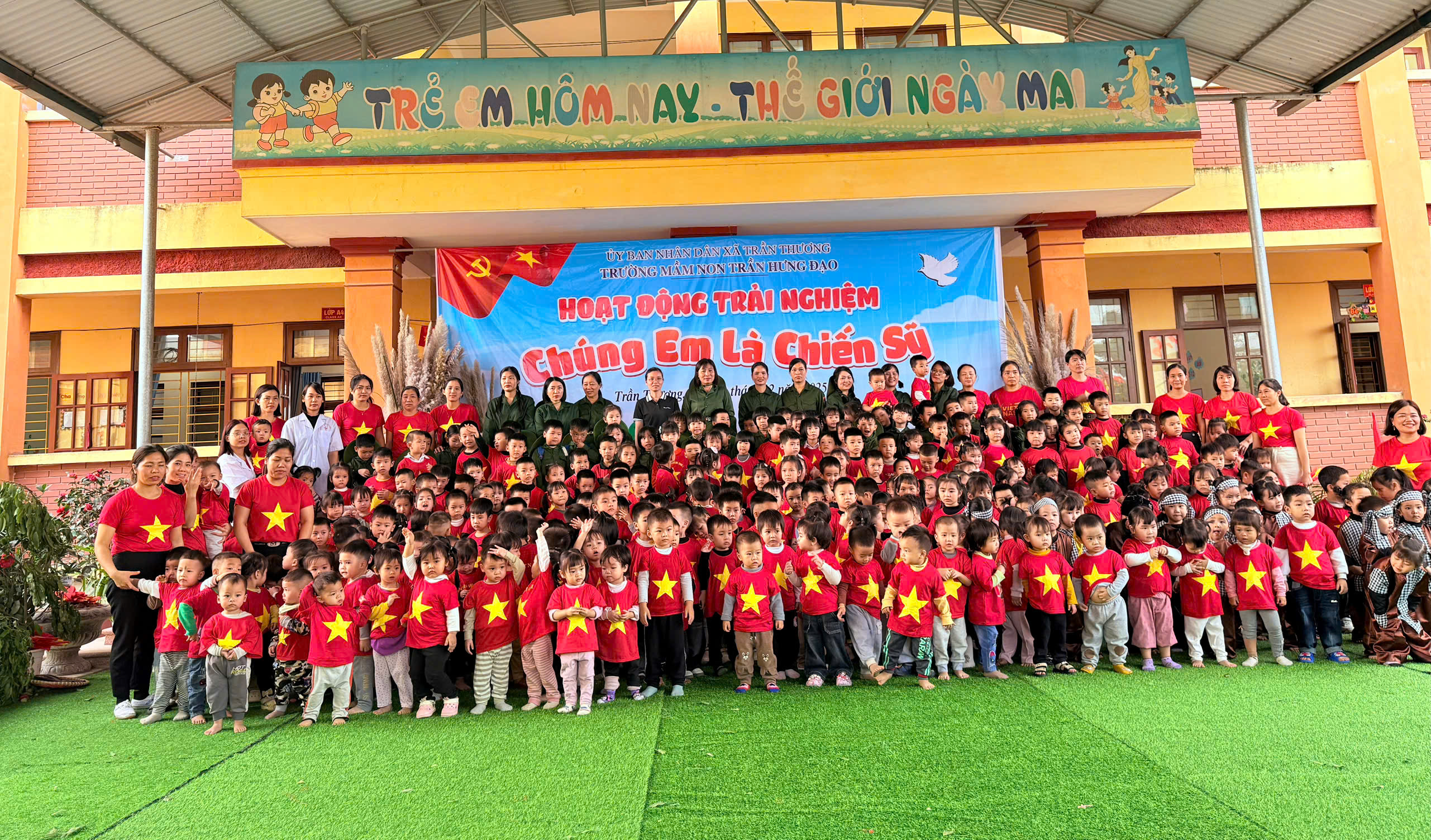 Hòa chung không khí thi đua sôi nổi chào mừng kỷ niệm 81 năm Ngày thành lập Quân đội Nhân dân Việt Nam (22/12/1944 – 22/12/2025), Trường Mầm non Trần Hưng Đạo, xã Trần Thương đã tổ chức cho trẻ tham gia hoạt động trải nghiệm đầy ý nghĩa với chủ đề “Chúng tôi là chiến sĩ”.