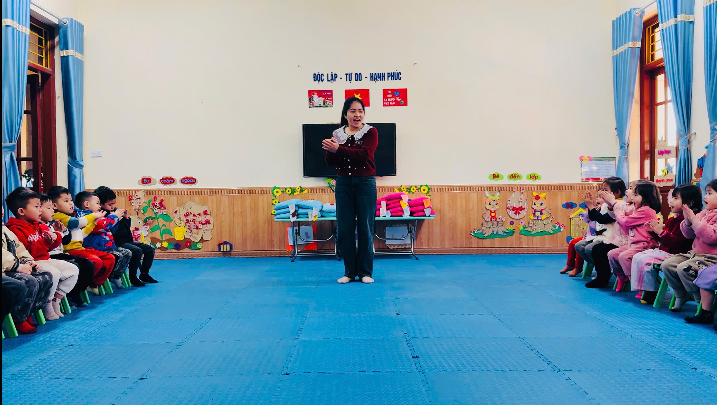 Nhằm đảm bảo sự phát triển toàn diện cho trẻ, bên cạnh việc tổ chức các hoạt động học tập và vui chơi tích cực, lớp 4-5 tuổi A4 đặc biệt chú trọng đến việc rèn nền nếp sinh hoạt, trong đó có hoạt động giờ ngủ trưa.