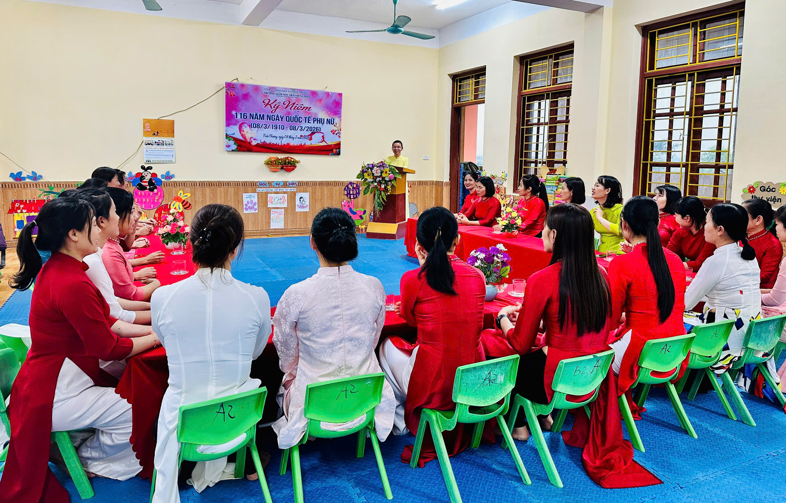 Sáng thứ Bảy, ngày 07/3/2026, Trường Mầm non Trần Hưng Đạo đã tổ chức hoạt động kỷ niệm 116 năm Ngày Quốc tế Phụ nữ (08/3/1910 – 08/3/2026) dành cho toàn thể cán bộ, giáo viên, nhân viên trong nhà trường. Đây là dịp ý nghĩa nhằm tôn vinh những đóng góp của đội ngũ nữ cán bộ, giáo viên, nhân viên; đồng thời tạo không khí vui tươi, đoàn kết trong tập thể sư phạm nhà trường.