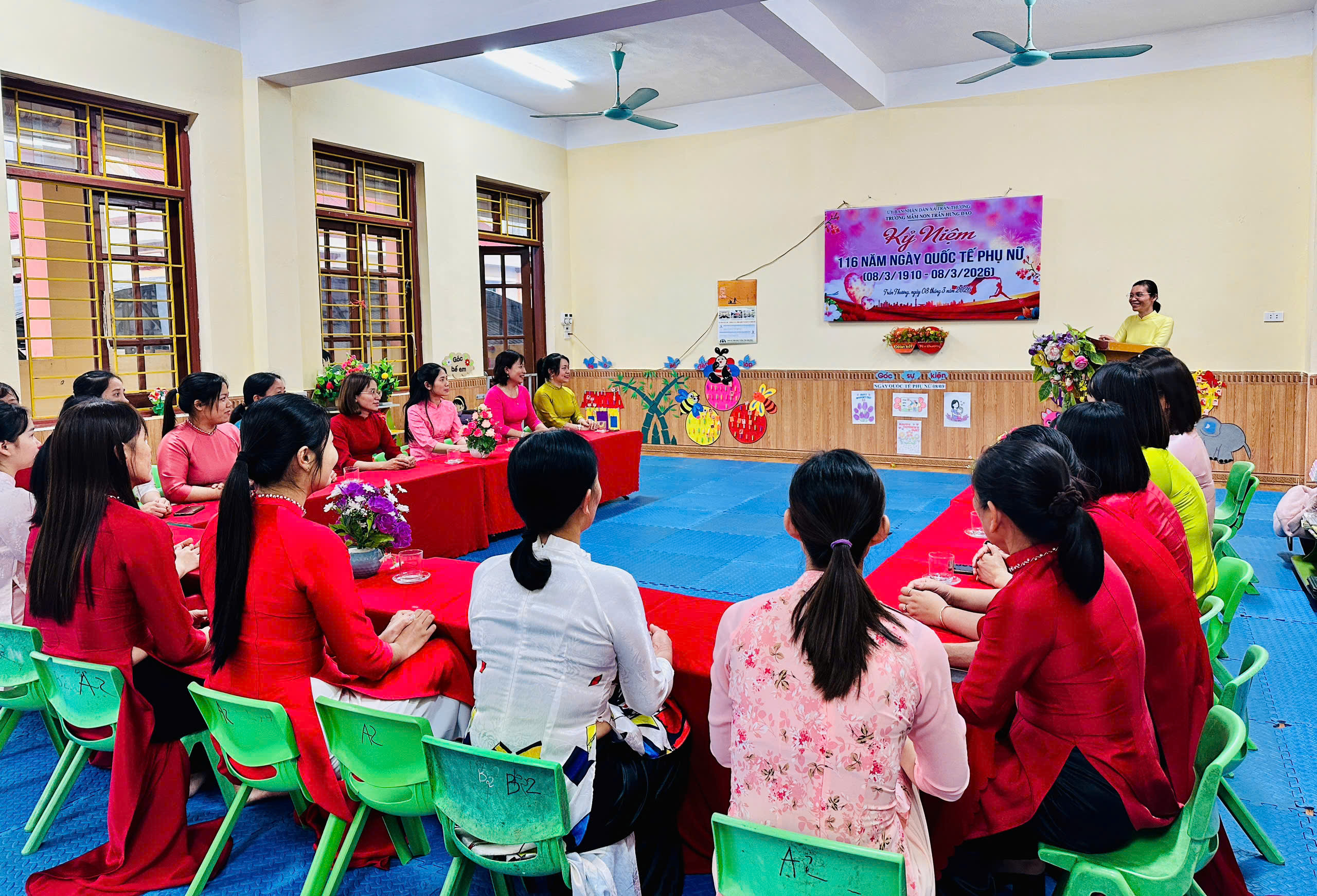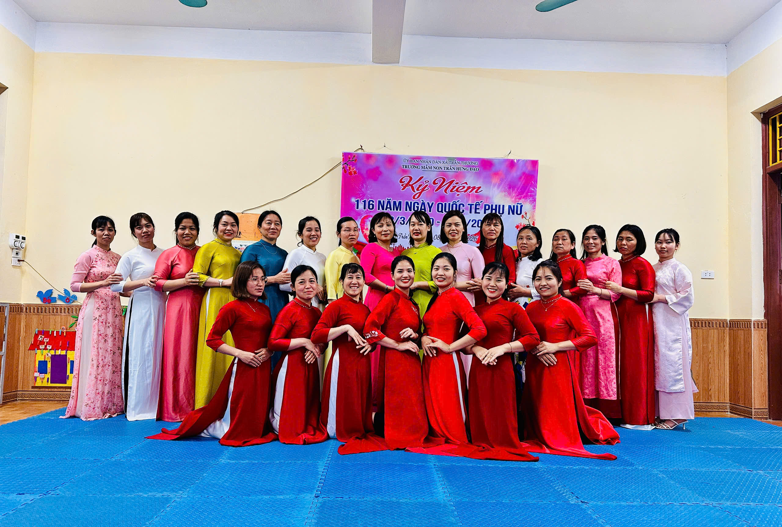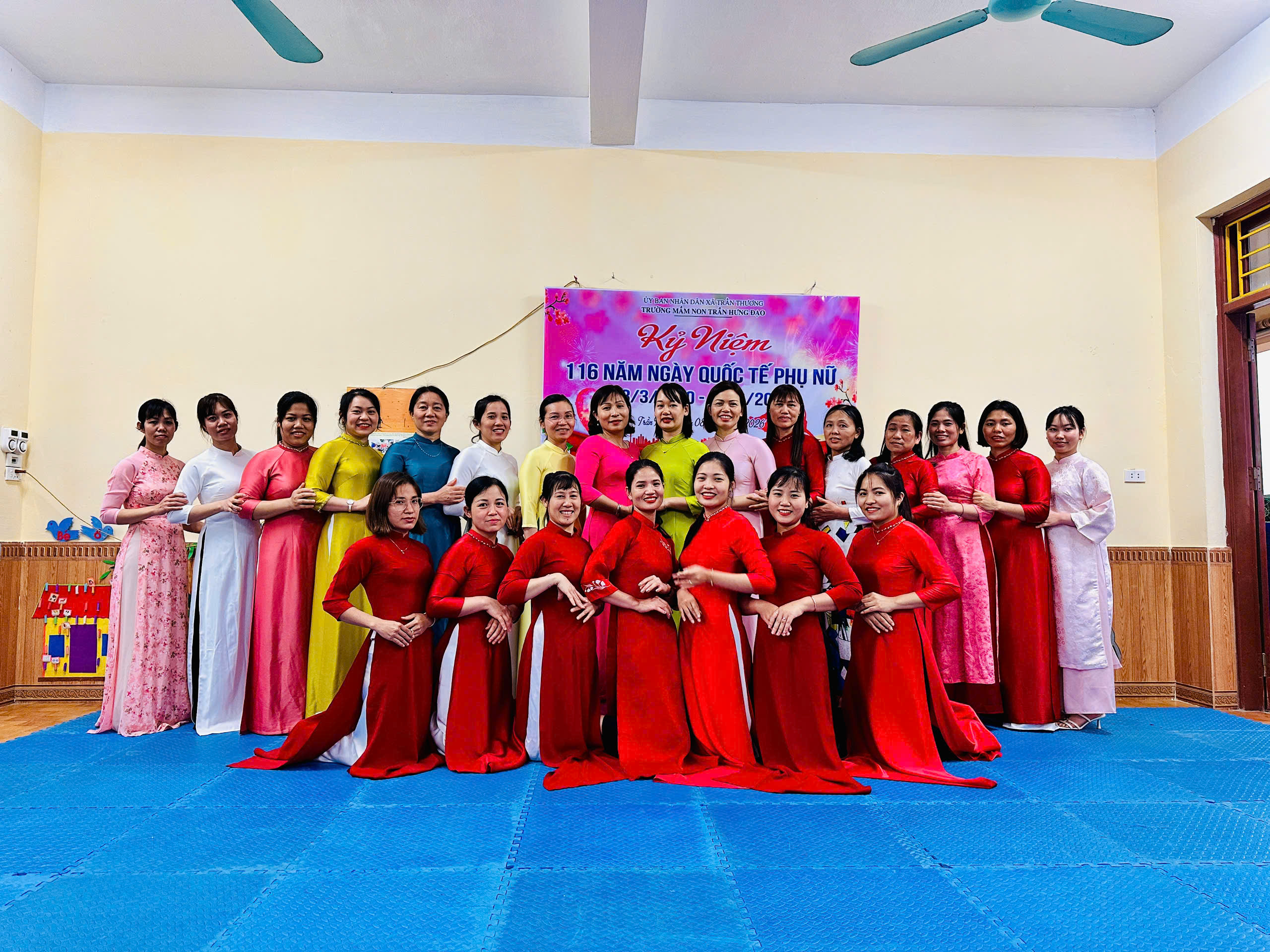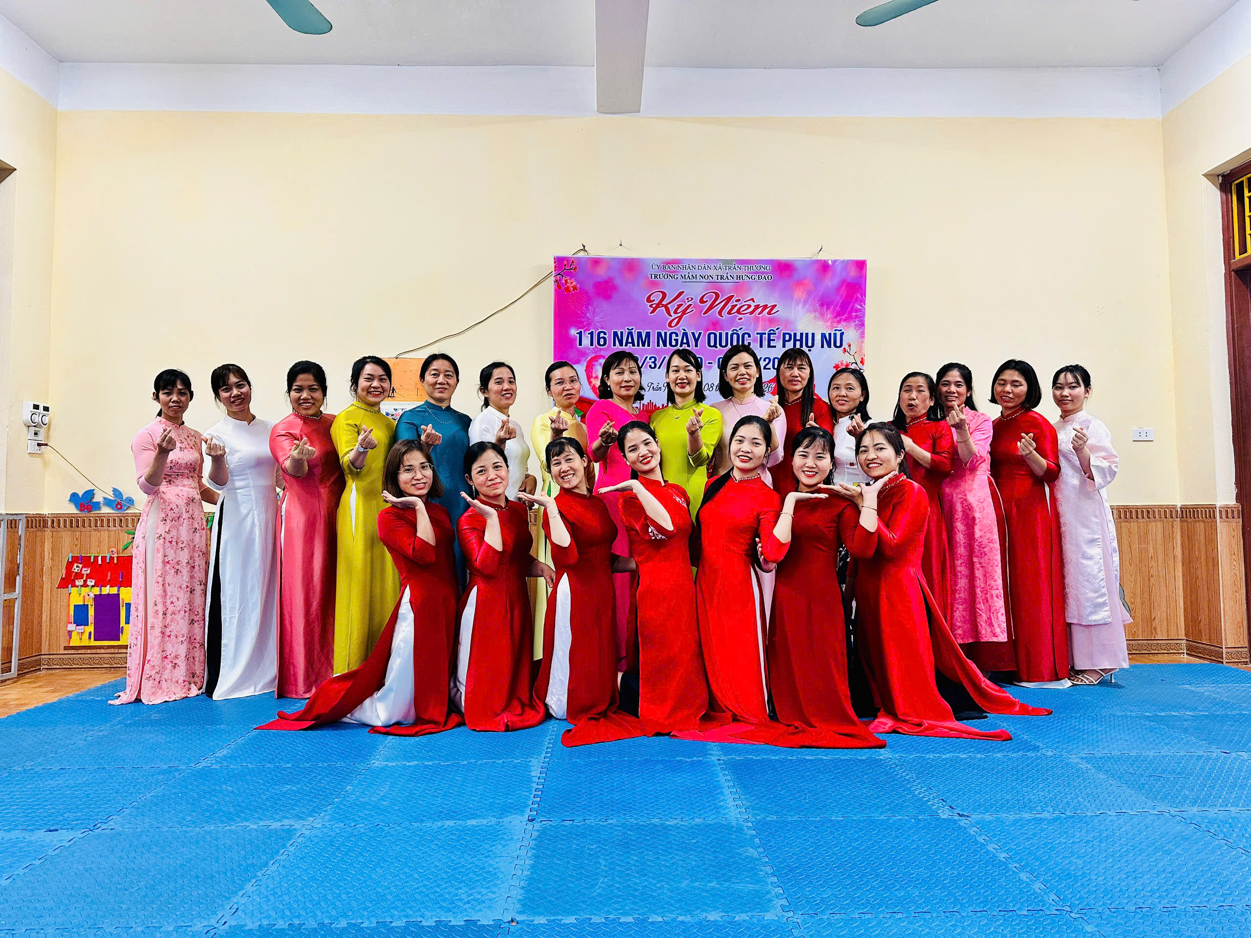 Sáng thứ Bảy, ngày 07/3/2026, Trường Mầm non Trần Hưng Đạo đã tổ chức hoạt động kỷ niệm 116 năm Ngày Quốc tế Phụ nữ (08/3/1910 – 08/3/2026) dành cho toàn thể cán bộ, giáo viên, nhân viên trong nhà trường. Đây là dịp ý nghĩa nhằm tôn vinh những đóng góp của đội ngũ nữ cán bộ, giáo viên, nhân viên; đồng thời tạo không khí vui tươi, đoàn kết trong tập thể sư phạm nhà trường.