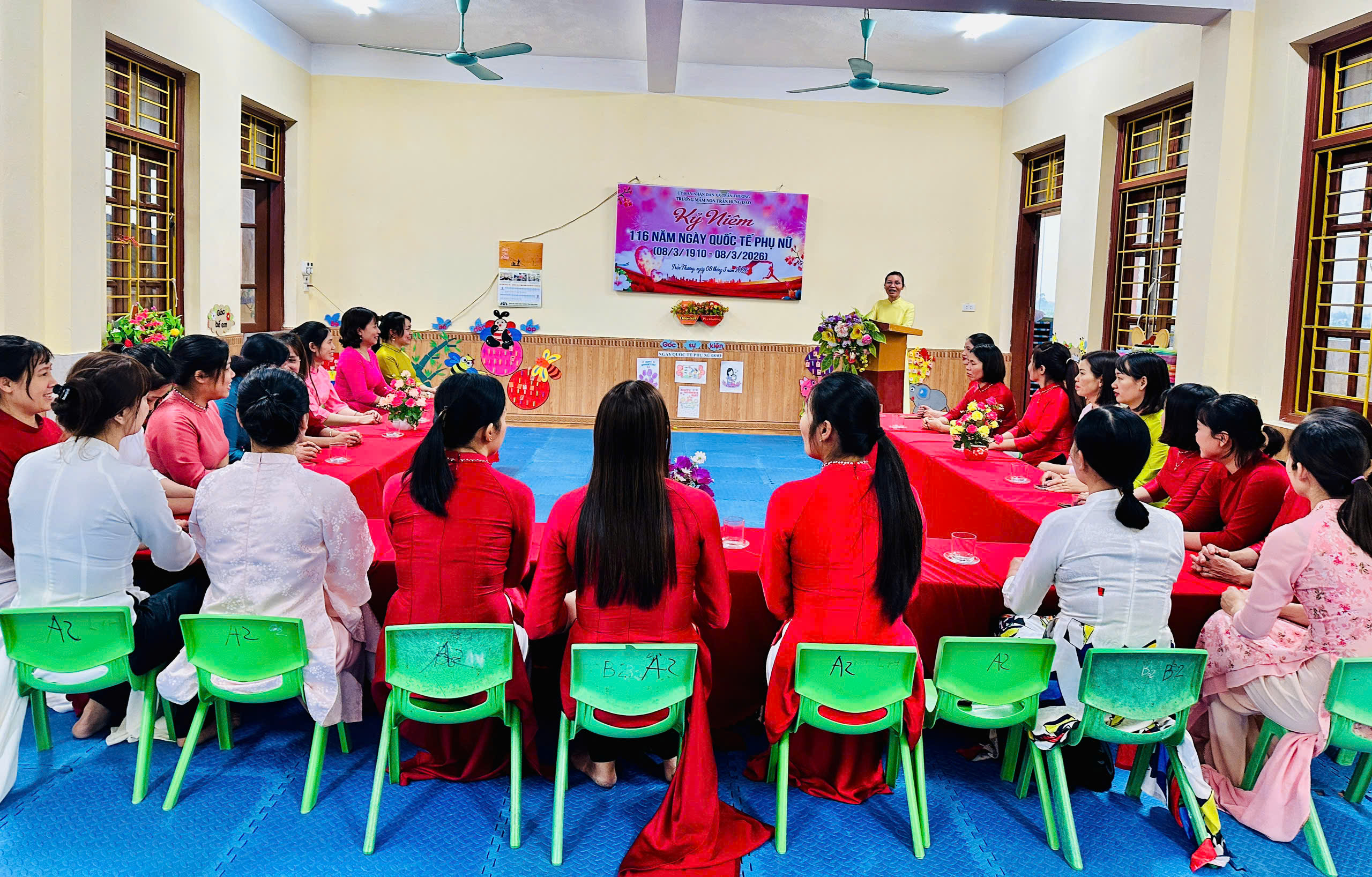 Tại buổi gặp mặt, đại diện Ban Giám hiệu nhà trường đã ôn lại lịch sử và ý nghĩa của Ngày Quốc tế Phụ nữ 8/3, khẳng định vai trò quan trọng của phụ nữ trong gia đình và xã hội. Đồng thời ghi nhận, biểu dương những nỗ lực, cống hiến của đội ngũ nữ cán bộ, giáo viên, nhân viên Trường Mầm non Trần Hưng Đạo trong công tác chăm sóc, nuôi dưỡng và giáo dục trẻ, góp phần xây dựng nhà trường ngày càng phát triển.