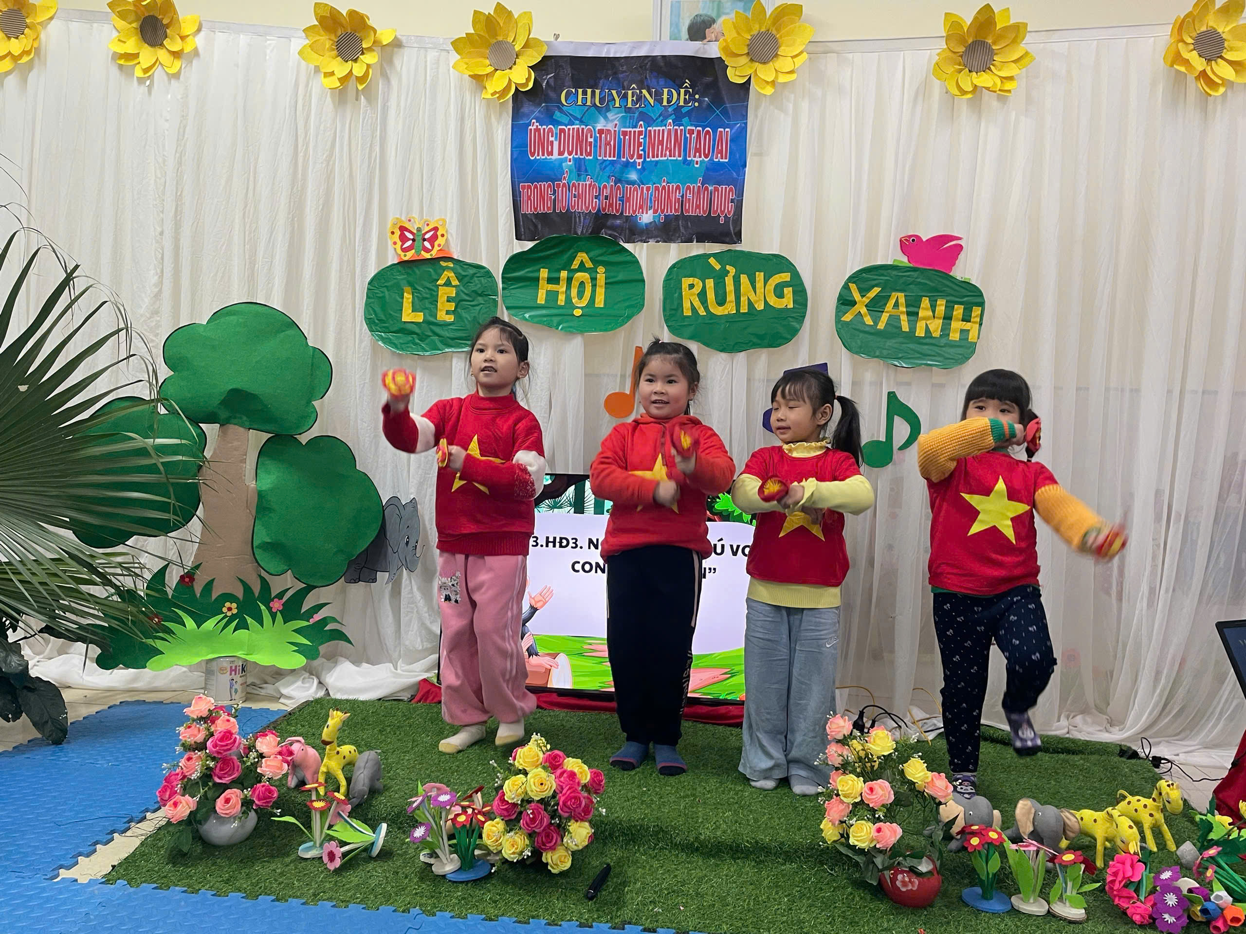 Thông qua hoạt động, trẻ không chỉ được phát triển khả năng cảm thụ âm nhạc, mà còn rèn luyện kỹ năng vận động, tăng cường sự phối hợp tay – chân, khả năng chú ý và phản xạ nhanh. Việc ứng dụng AI cũng góp phần giúp giáo viên đổi mới phương pháp tổ chức hoạt động, nâng cao chất lượng chăm sóc, giáo dục trẻ theo hướng hiện đại, linh hoạt, phù hợp với yêu cầu chuyển đổi số trong giai đoạn hiện nay.